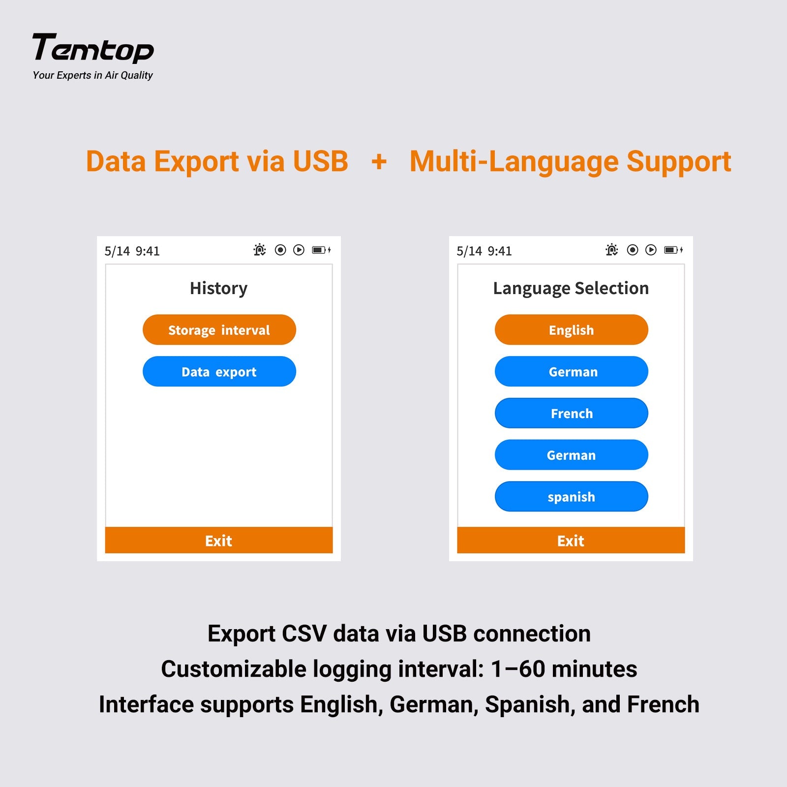Temtop LKC-1000C Portable CO Detector with TFT Color LCD Screen, USB Data Export, Calibration, and Adjustable Alarm Threshold