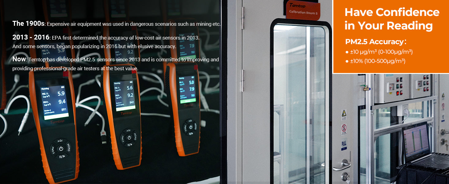- Temtop advanced third-generation laser particle sensor has a lifetime of up to 20,000 hours. Combined with the unique particle swarm optimization algorithm, it makes particle measurement more accurate and stable.