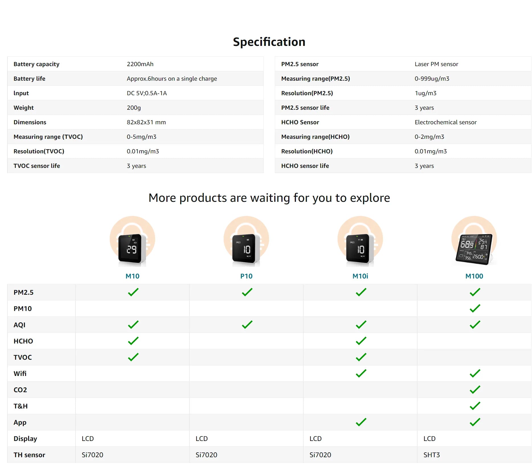Accuracy: ±10μg/m³(0-100μg/m³); ±10% μg/m³(others)